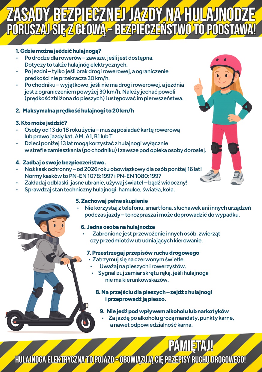 – przygotowane zostaną materiały edukacyjne oraz ulotki informujące o zmianach w ruchu drogowym dotyczącym hulajnóg, które będą dostępne za darmo online
